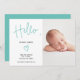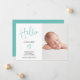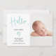 Um guião moderno, simples e elegante, saudação tipografia, anúncio de nascimento de um bebê com uma colagem fotográfica, e uma elegante caligrafia tipográfica, com um nome de bebê. Apresentando o bebê! A cor de fundo de turquesa lacrimejante é totalmente editável.
