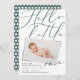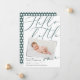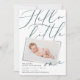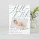 Olá, pequeno anúncio de nascimento de fotos moderno. Texto elegante, foto impressa moderna