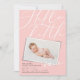 Olá, pequeno anúncio de nascimento de fotos moderno. Texto elegante, foto impressa moderna