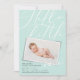 Olá, pequeno anúncio de nascimento de fotos moderno. Texto elegante, fotografia impressa moderna. Azul aqua verde.