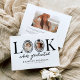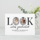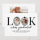 Celebre um marco importante com um toque moderno usando este cartão de anúncio de formatura diferenciado. Com um fundo branco limpo e a divertida frase “olhe quem se formou”, o design usa de forma inteligente o “O” como uma moldura para foto, acentuado com um laço preto chique e um chapéu de formatura para um toque lúdico e elegante.