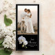 Anuncie seu novo status após sua cerimônia de casamento com a Orquídea Branca bonito no Cartão com fotos de Casamento do Recem casados Negro. Personalize-o com uma foto de casamento da noiva e noiva, nomes pessoais e data da cerimônia de casamento. Este cartões de fotos de recem casados de flores personalizado e elegante apresenta uma fotografia floral de flores de orquídea de falaenopse branca no caule sobre fundo preto.