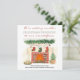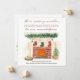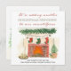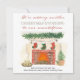 Personalizado 2 em 1 cartão de férias e anúncio de gravidez. A frente tem uma cena de natal aconchegante em aquarela com uma lareira quente, uma garland de pinheiro, velas e três meias de Natal, indicando uma família de três ou uma família de cinco (3 crianças). O texto diz: "Estamos a adicionar outra Parada de Natal à nossa peça de lata" e também pode acrescentar a data de vencimento do seu bebê, saudações sazonais e nomes. Nas costas, há uma simples cena florestal com árvores de abeto e neve.