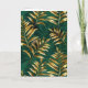 Padrão contínuo de ouro, jóias, ramos de samambaia brilhantes e folhas em fundo verde, florestal e texturizado. Samambaia dourada.