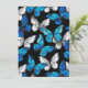 Padrão contínuo realista de borboletas azuis e brancas em fundo preto.