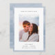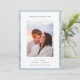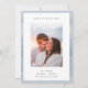 As placas de anúncio de noivado minimalista de chic apresentam uma foto vertical ou orientada para retrato em um fundo branco com uma borda fina de faixa de aquarela em tons etéreos de azul. "Forever Starts Here" aparece no topo em letras modernas, com seu anúncio, nomes e detalhes adicionais na parte inferior.