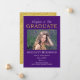 Sofisticado e elegante, mas brilhante, design de graduação em tons de roxo e dourado "Parabéns ao nosso graduado" com purpurina falsa, apresentando uma única foto na frente com as palavras "Parabéns ao nosso" em uma fonte de texto não editável e a palavra "GRADUADO" em purpurina dourada falsa. O nome do graduado, escola, ano de conclusão, data de formatura e planos futuros ficam abaixo da foto. A parte traseira tem um fundo de purpurina dourada falsa. Design por Holiday Hearts Designs (direitos reservados).
