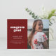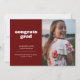 Anuncie a grande conquista do seu formando com este anúncio de graduação simples, mas na moda. Ele apresenta as palavras "felicats formando" em uma fonte branca com estilo retrorreflector em um fundo vermelho escuro, assim como espaços para uma foto na frente e no verso. O verso do anúncio também tem espaço para uma nota pessoal sobre o formando, incluindo planos futuros.