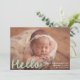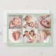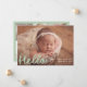 Bem-vindos a sua pequena com este anúncio de nascimento verde da casa de banho encantador com a fotografia horizontal do bebê e um "Olá" alegre numa cobertura de escrita branca manuscrita. Personalize facilmente com o nome do seu bebê, data de nascimento e estatísticas à frente. O verso mostra uma colagem de fotos moderna com seis fotos quadradas e espaço abaixo para incluir nomes familiares ou uma mensagem curta. Este design minimalista, mas brincalhão, é uma maneira perfeita de compartilhar sua alegria com os entes queridos.