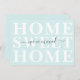 Anuncie seu novo endereço aos amigos, familiares e associados com este moderno cartão de anúncio do Home Sweet Home. Um legal fundo pastel aqua tem um texto branco "Home Sweet Home" em letras ousadas e modernas. O texto "Nós nos movemos" está sobreposto ao texto de fundo em uma cinza de carvão escrita à mão. A parte traseira da placa tem um modelo de texto com uma mensagem de exemplo para fornecer seu novo endereço e uma nota breve, juntamente com outras informações de contato desejadas. Você pode adicionar ou remover linhas de texto que deseja personalizar o texto com as informações desejadas. Selecione "clique para o cliente mais" na parte inferior do modelo de design para abrir o modelo para edição, adição ou remoção adicionais de linhas de texto, ou movendo o texto para reposicioná-lo conforme desejado.