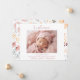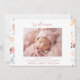 Apresente sua menina precioso ao mundo com nosso charmoso Pastel Flowers Bem-vindos Narração de Nascimento da Menina. Esta placa elegante apresenta um design floral suave e delicado que enquadra suavemente o conteúdo, evocando um senso de calor e alegria. As cores pastéis criam um pano de fundo caloroso e acolhedor, perfeito para celebrar a chegada do seu pequeno. A frente do anúncio oferece espaço para uma foto personalizável do seu bebê, permitindo que você compartilhe um momento especial com a família e os amigos. Abaixo da foto, você pode adicionar o nome do seu bebê, juntamente com a data e hora de nascimento, altura e peso. Esta seção fornece todos os detalhes essenciais em um layout bem organizado. Na parte de baixo do cartão, há espaço para os nomes dos pais orgulhosos, acrescentando um toque pessoal a este anúncio sincero.