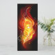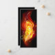 Pena de pavão brilhante feita de fogo e chamas sobre fundo negro.