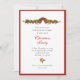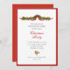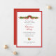 Elegante, convite de festas de Natal com pintura manual de granja e arco vermelho.