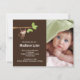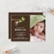 Nosso macaco pequeno tem o bebé chegado o anúncio do nascimento que da foto é uma maneira doce de anunciar a seus família e amigos que seu docinho pequeno chegou. O cartão do anúncio da foto caracteriza o macaco pequeno o mais bonito que pendura de um grupo do ramo de árvore em um fundo marrom com um acento pontilhado polca. Adicione sua foto e a informação e você são todos ajustam-se para ir! estúdio do ©cocoa