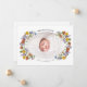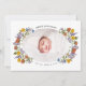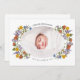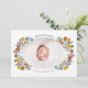Um design elegante com sua foto favorita em uma adorável forma oval cercada por flores silvestres coloridas de aquarela. O nome do seu bebê aparece no topo e na data de nascimento no fundo na tipografia clássica. O inverso apresenta a sua mensagem personalizada. Personalize este obrigado único que você / novo cartão com fotos de anúncio de nascimento de bebê clicando no botão "Personalizar"!