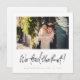 Este simples e na moda moderno anúncio de casamento de fotos, anunciado com o elopemento de cartas planas, modelo apresenta 'Nós amarramos o nó!' em preto em um roteiro moderno que se sente quente e familiar. Este elemento do design não pode ser alterado. Quando você substitui nossos nomes de exemplo e data abaixo dela por sua própria, você também pode mudar a fonte e a cor para se adequar ao seu estilo. A cor padrão para seus nomes e data é um tom de ouro elegante chamado California Dourado, enquanto nós usamos apenas nomes em nosso texto de amostra, você pode adicionar um sobrenome, ou 'Sr. s e Sra....' e você também pode editar o símbolo '&' entre os nomes para mostrar um símbolo '+' ou outra coisa. Definimos os cantos nítidos padrão como padrão, mas este design também parece excelente com cantos arredondados, então tente ambos os modos de edição para ver quais o capturam! Em ambos os lados, tornamos o fundo transparente para deixar a cor do papel simplesmente servir como o tom base. Você pode editar isso e escolher uma cor em um ou em ambos os lados, se preferir. Colocamos algum texto de marcador de posição no verso para que você exclua e substitua por sua própria mensagem, com ou sem seus nomes, se você quiser assinar manualmente quando receber os cartões. Mas você pode simplesmente optar por excluir nosso texto de marcador de posição e deixar o vazio de trás completamente para que você possa escrever uma mensagem manualmente em cada cartão e assinar seus nomes. Em qualquer caso, lembre-se de que há um texto de marcador de posição no verso, bem como na frente, e apague todo o nosso texto de amostra/marcador de posição em ambos os lados do cartão, assim como nossa foto de exemplo! A cor do texto no verso é uma cinza muito escura que é na sua maioria negra, mas você pode mudar a cor, a fonte e o tamanho do texto. Torne este anúncio encantador de elopemento de casamento único seu com as ferramentas intuitivas de design do zazzle, sua foto favorita e sua inspiração!