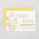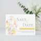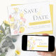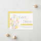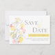 Um belo e simples contorno amarelo, coral e cinza e pétalas gráficas salvam o cartão de casamento. Parte do jogo gráfico moderno de casamentos de pétalas de flores. Um elegante design exclusivo de Sarah Trett apenas para www.mylittleedenweddings.com