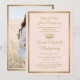 Share the joy of a high school or college graduation with custom photo blush pink and gold announcements. This formal style template includes parents' and graduate's names, as well as any wording of your choice, such as party invitation details, special honors, degree title, favorite inspirational quote, graduate's contact info, future education plans, or new job position. The modern bordered design features a pretty blush pink background, a faux foil mortar board cap, elegant script calligraphy, traditional classic typography, and one photo of your choice, such as a senior picture or image from the commencement ceremony. Please note that the gold is printed color, not metallic foil. Available as both printed and downloadable digital announcements, these graduation cards are a stylish way to share a special day celebration with family and friends. Congratulations to the graduate!