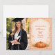 Warm autumn tones meet elegant celebration styling in this pumpkin and floral graduation design. A hand-painted heirloom pumpkin sits surrounded by soft peach blooms, muted greenery, and golden foliage, creating a romantic harvest aesthetic. The delicate wreath framing and warm ivory background give it a refined, feminine feel while still embracing cozy fall charm.