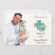 This graduation party design is created especially for a veterinarian graduate, featuring a clean, minimalist layout with a stethoscope and paw illustration. The modern black-and-white style keeps the focus on the achievement while adding a subtle, professional nod to veterinary medicine.