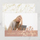 A graduação está perto da esquina. Aqui para todos esses Formandos está um Cartão de Anúncio de Graduação maravilhosamente projetado. O design é composto por uma foto com vários padrões Dourados Faux Rosa. Você pode adicionar sua própria Foto, ano de aulas de Graduação e seu nome. Marquei as modelos necessárias para ajudá-lo nesta personalização. Se tiver alguma dúvida ou precisar de ajuda, contacte-me através da minha Loja Zazzle. Eu ficaria encantado em ajudá-lo.