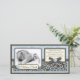 Script elegante e impressões de espiral com arco de aparência 3D e cartão com fotos de teclas.