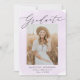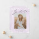 Anúncio elegante de quatro fotos com "Formando" exibido em um roteiro preto de caligrafia moderna com um fundo de lavagem a aquarela púrpura claro. Personalize a frente do anúncio de formatura roxa adicionando sua foto favorita e o nome do formando, a escola e o ano de formatura. O cartão de lançamento de graduação é revertido para exibir 3 fotos adicionais com espaço para texto personalizado, como planos futuros do formando, realizações, detalhes da festa de formatura, etc. O design é perfeito para segundos graus e formandos universitários.