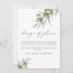 Um design elegante para anunciar uma mudança nos seus planos de casamento. Com belos ramos de oliveira em aquarela verde e folhas, com um título "mudança de planos" em caligrafia moderna verde escura, sua mensagem em fonte sans serif preta, em um fundo branco. O verso apresenta um padrão de azeitonas e folhas em aquarela preta e verde.