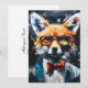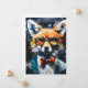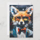 Uma raposa afiada em um terno e óculos, misturando cores vibrantes e formas dinâmicas para capturar a essência de elegância sofisticada e peculiar.