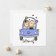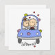 Uma noiva e um noivo em figura de palito em um carro de casamento azul e texto que diz Recém-Casados em camisetas de noiva e noivo, canecas, bolsas, ímãs, lembranças, cartões, adesivos, chaveiros, jogos americanos, diários, pastas e outros itens de design de carro de casamento de noiva e noivo em figura de palito.