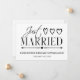 Parabéns ao casal feliz que acabou de se casar. Com este recem casados preto e branco você pode anunciar seu casamento para a família e os amigos. Inclui uma caixa de texto para escrever uma nota explicativa na parte de trás deste cartão de casamento. A tipografia simples e moderna da elegância é a melhor.