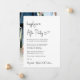 Convite de casamento ou anúncio de casamento privado e recepção de casamento ou festa de celebração com "Festa Felizes para Sempre" em um roteiro moderno e elegante. Personalize facilmente o seu anúncio de casamento e convite e adicione seus nomes em um roteiro semelhante a uma assinatura. O verso apresenta sua foto de casamento favorita, seus primeiros nomes e datas de casamento e recepção.