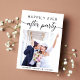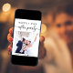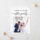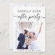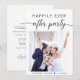 Elopamento moderno ou anúncio de casamento privado e convite de recepção. A frente apresenta sua foto, "Festa Feliz para Sempre" em tipografia simples e um roteiro moderno com floreios e seus nomes e data de casamento. No verso, personalize seu anúncio e convite e adicione seus nomes em uma assinatura como um script.