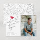 O design apresenta uma fotografia de formando personalizada com um chapéu de graduação vermelho de brilho. A citação da aventura é escrita em script escrito à tipografia.