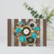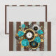 Relógio antigo e patenteado, adornado com joias, mãos de ouro e algarismos latinos com rosa de turquesa sobre fundo castanho e listrado. Estilo Steampunk.