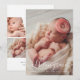 Compartilhe a chegada da sua bebê com este anúncio de nascimento de foto em formato retrato chic. Uma foto frontal impressionante e sem bordas é sobreposta por uma caligrafia moderna branca à mão para o nome da bebê e detalhes do nascimento. O verso apresenta uma colagem de quatro fotos e uma mensagem "Recebida com Amor" dos pais. Limpo, minimalista e maravilhosamente moderno. Todo o texto é totalmente personalizável.