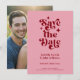 Retro Typography Wedding Save The Date Invitation. With a modern retro typography "save the date" in a pink and red color palette on the front with names and date, website or your own text in a simple and minimal design. A full-frame photo on the back of the wedding announcement. A unique and affordable Wedding Save the Date for couples on a budget. Choose prints and/or a digital announcement download.