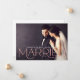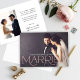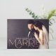 Anuncie seu casamento com calor e glamour usando este anúncio de casamento romântico em rosa dourado serif com foto. Uma tipografia metálica rosa dourado superdimensionada escreve "Casada" sobre sua foto sem bordas, com nomes e data estabelecida exibidos elegantemente acima. O verso inclui uma segunda foto e uma carta personalizável sobre sua cerimônia privada. Substitua ambas as fotos e edite todo o texto para criar o presente perfeito.