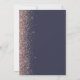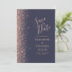 A borda esquerda deste elegante casamento moderno salve o cartão de data apresenta um rosa dourado falso borda brilhante. O texto personalizável combina a letra rosa-rosa, a letra copperplate e a letra itálico num fundo azul escuro. O verso apresenta um design azul escuro e rosa dourado correspondente.