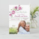 Esse estilo de aquarela floral, que salva o cartão com fotos de data, é uma mistura perfeita entre o atual e o tradicional. Design é um rosa pulverizado em roxo macio e branco com sotaque verde. O texto está em ameixa escura com a coordenação dos sotaques florais no verso. Edite seus nomes, data, substitua a foto e pronto.