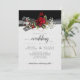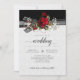 Um design clássico e vintage com rosas vermelhas profundas e requintadas, detalhes em dourado e respirar de bebê sobre uma fita preta e branca e fundo texturizado. Texto de caligrafia manuscrita elegante misturado com uma fonte moderna. Se precisar de ajuda, por favor me envie um e-mail para shutterbug600@yahoo.com.