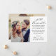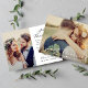 Anuncie seu casamento com este anúncio de casamento romântico com roteiro apresentando "Recém-Casados" em caligrafia branca fluida em sua foto sem bordas. Nomes e data de casamento são exibidos com um acento de coração doce. O verso inclui uma segunda foto e carta personalizável que compartilha os detalhes da sua cerimônia íntima. Substitua as fotos e personalize todo o texto para criar o presente perfeito para os entes queridos.