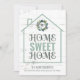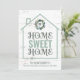 Envie a sua família e amigos este novo cartão de mudança de endereço temático. Esta design de tendências apresenta um esboço de uma casa em xícara com uma coroa de louros verde e um monograma personalizado inicial no centro para. abaixo estão as palavras "Home Sweet Home" sobre um fundo de madeira branca e cinza intacta. A parte inferior da placa tem seu nome de família e novo endereço. A parte de trás do cartão tem um fundo de madeira meteorizada correspondente, uma coroa de louros junto com sua mensagem e assinatura personalizadas. Desenhada por Susan Coffey.