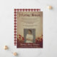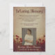 Anúncio memorial Vintage com um campo de papoilas, impresso para parecer curado e vintage. Fontes elegantes em burgundy escuro. As costas apresentam um padrão vermelho escuro de gingham. Adicione uma foto do seu amado também.