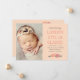 O cartão de anúncio de nascimento com foto elegante apresenta sua bebê com um cabeçalho de texto "Apresentamos" e tipografia de nome em negrito e empilhado em um fundo de pêssego quente. Pequenos enfeites florais de arte popular em rosa salmão, framboesa e verde-sage enquadram o design. A frente e o verso apresentam uma foto de recém-nascido com detalhes do nascimento e uma mensagem de "Pais Orgulhosos". As cores pêssego e cinza quente podem ser modificadas para combinar com suas fotos. Todo o texto é totalmente personalizável.