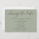 Anuncie o adiamento do seu casamento com este cartão minimalista verde sage com uma fonte de letra moderna.