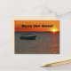 Uma fotografia da silhueta de um barco de pesca ao pôr do sol, com um céu laranja vibrante, decora este cartão postal "Save the Date" de 50º aniversário, único e divertido. O verso tem letras pretas em fundo marfim. Você pode facilmente ALTERAR o NOME, IDADE, EVENTO, DATA, etc. O selo correspondente para cartões postais é o produto zazzle.com 172091251412801076. Fotografia original por Marcia Socolik. Todos os Direitos Reservados © 2014 Alan & Marcia Socolik.