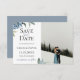 Flores de aquarela azul empoeirada com folhagem botânica de jardim, cartão de salvar a data de casamento com foto. Projetado para combinar com nossa Coleção Botânica Azul Empoeirado.