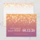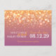 Salve a data do efeito das bolhas de champanhe ouro amarelo alaranjado e mauve roxo. Perfeito em anunciar um casamento de champanhe. Parte do jogo de noites de bolhas de champanhe. Um design gráfico elegante de Sarah Trett.