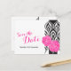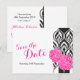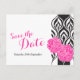Salve o cartão postal de casamento moderno e luxuoso com cravo dianthus rosa, preto, branco e um toque de rosa brilhante. Personalize com os detalhes do seu casamento. Projetado por Sarah Trett.
